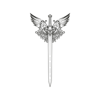 The sword symbolizes strength and protection, while the wings represent freedom and transcendence. The floral accents add a touch of beauty, embodying the balance of power and grace in life's journey.